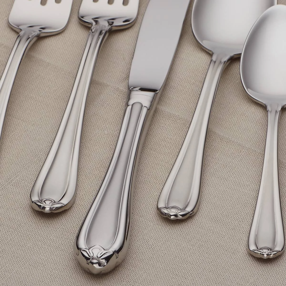 Be the first to review “Gorham Melon Bud Frosted™ 5-piece Place Setting Flatware” Cancel reply