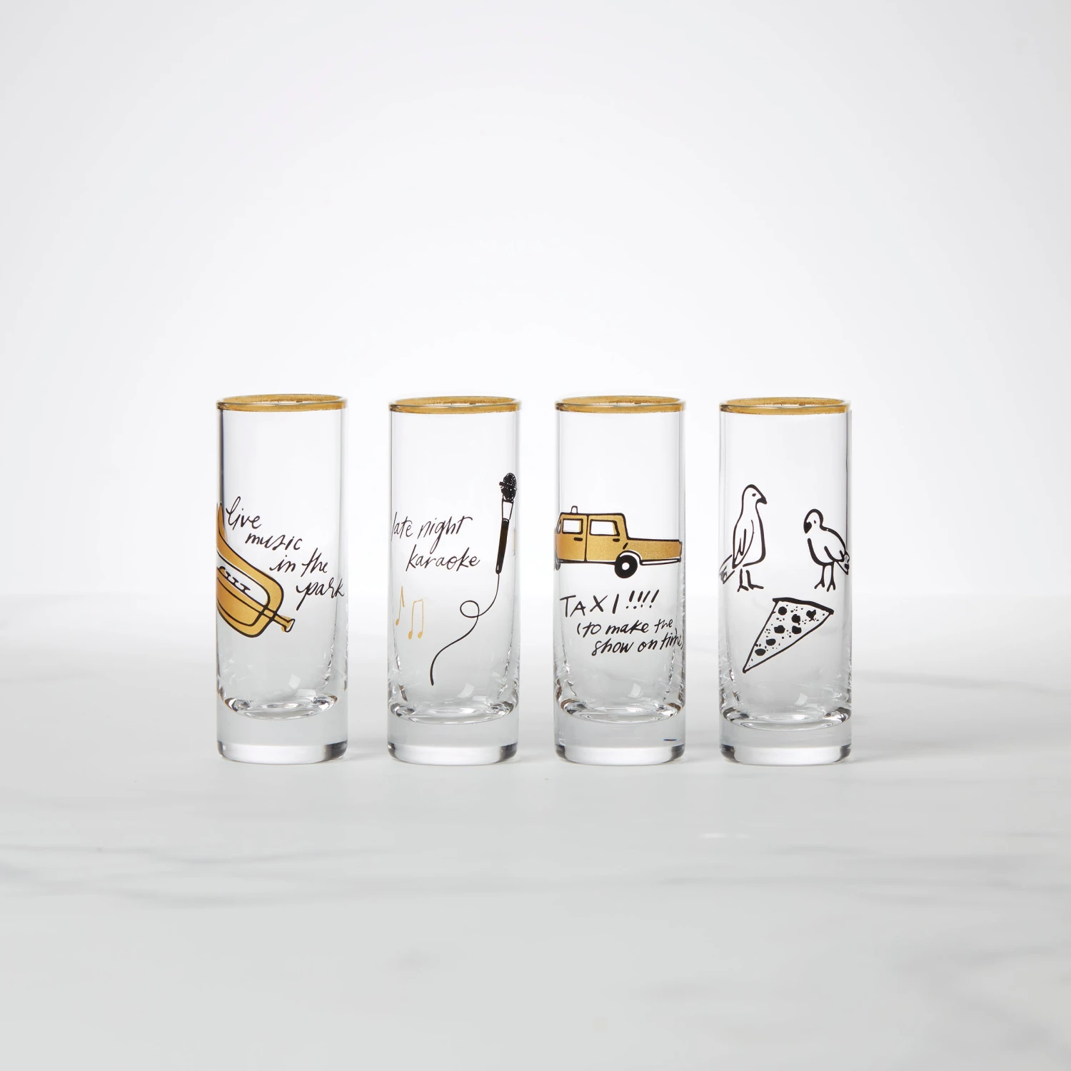 Oh, New York… We love you! Kate Spade New York’s shot glasses pay tribute to all those things that define The City That Never Sleeps: cab rides, live music in the park, late night karaoke…