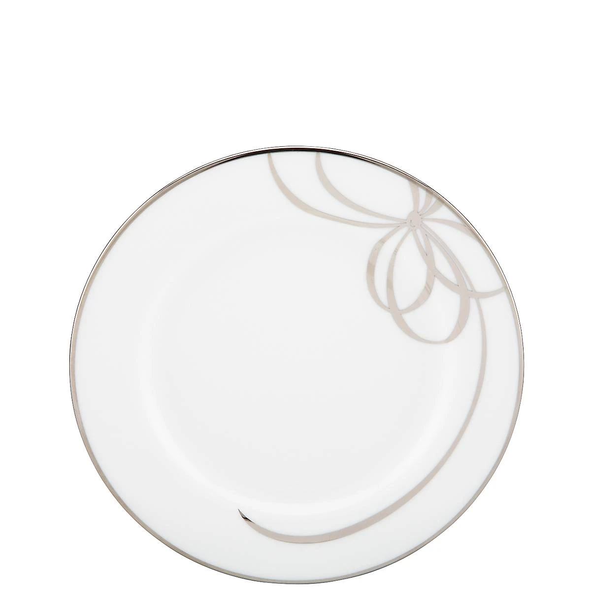 There is no need to wrap this dinnerware — it is already adorned with a delicate flourish of platinum ribbon. The Belle Boulevard Bread Plate from Kate Spade New York is crafted of durable white bone china, and is dishwasher-safe.