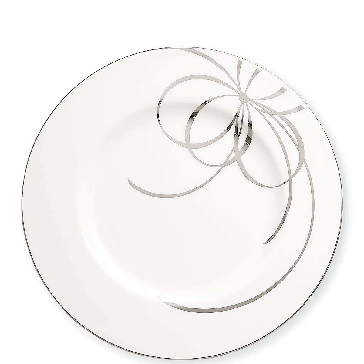 There is no need to wrap this dinnerware — it is already adorned with a delicate flourish of platinum ribbon. The Belle Boulevard Accent Plate from Kate Spade New York is crafted of durable white bone china, and is dishwasher-safe.