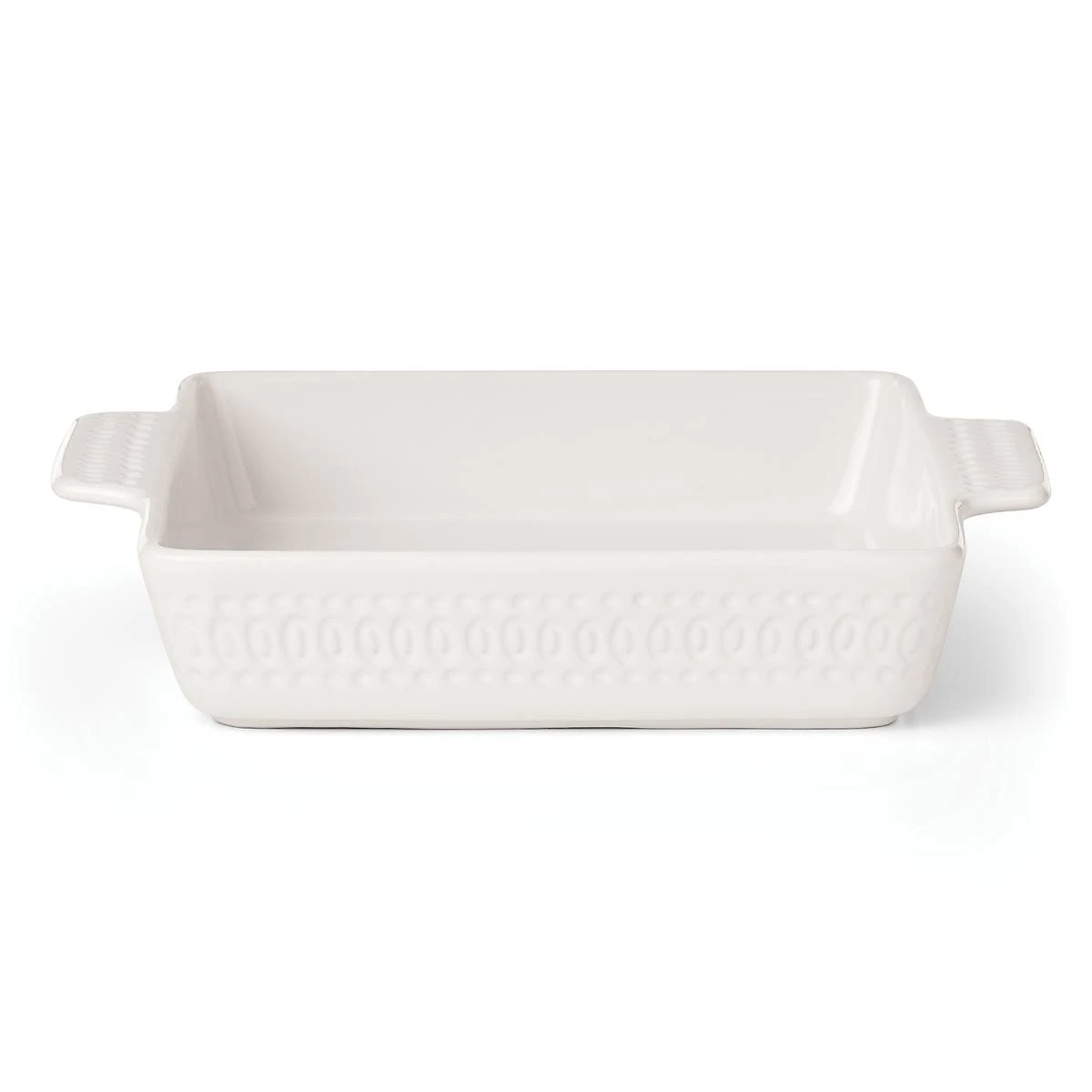 Made from glazed stoneware, the Kate Spade New York Willow Drive Collection is defined by its pretty, eyelet-inspired detail and sets the scene for any meal–whether it’s a homemade, multi-course masterpiece or takeout. The Willow Drive Grey Square Baker is microwave, dishwasher, and over-safe up to 400 degrees.
