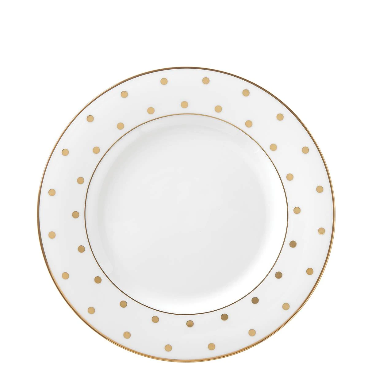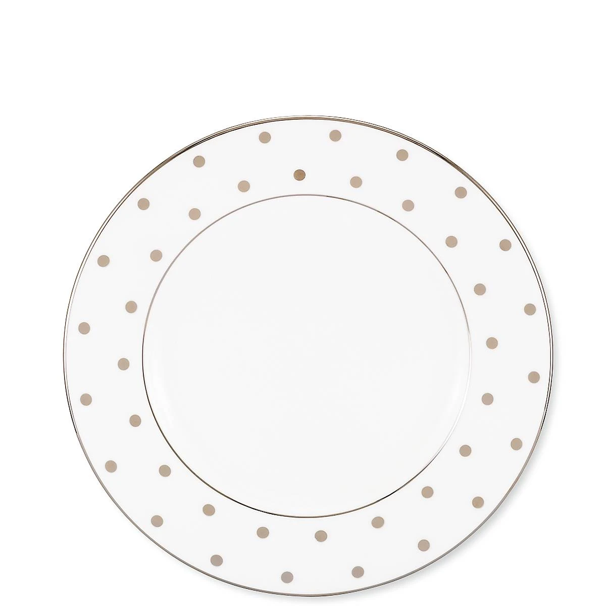 Add a playful dash of polka dots to any meal with our Larabee Road Gold Collection. From Kate Spade New York, this salad plate is crafted from durable white bone china with gold accents, and is dishwasher-safe.