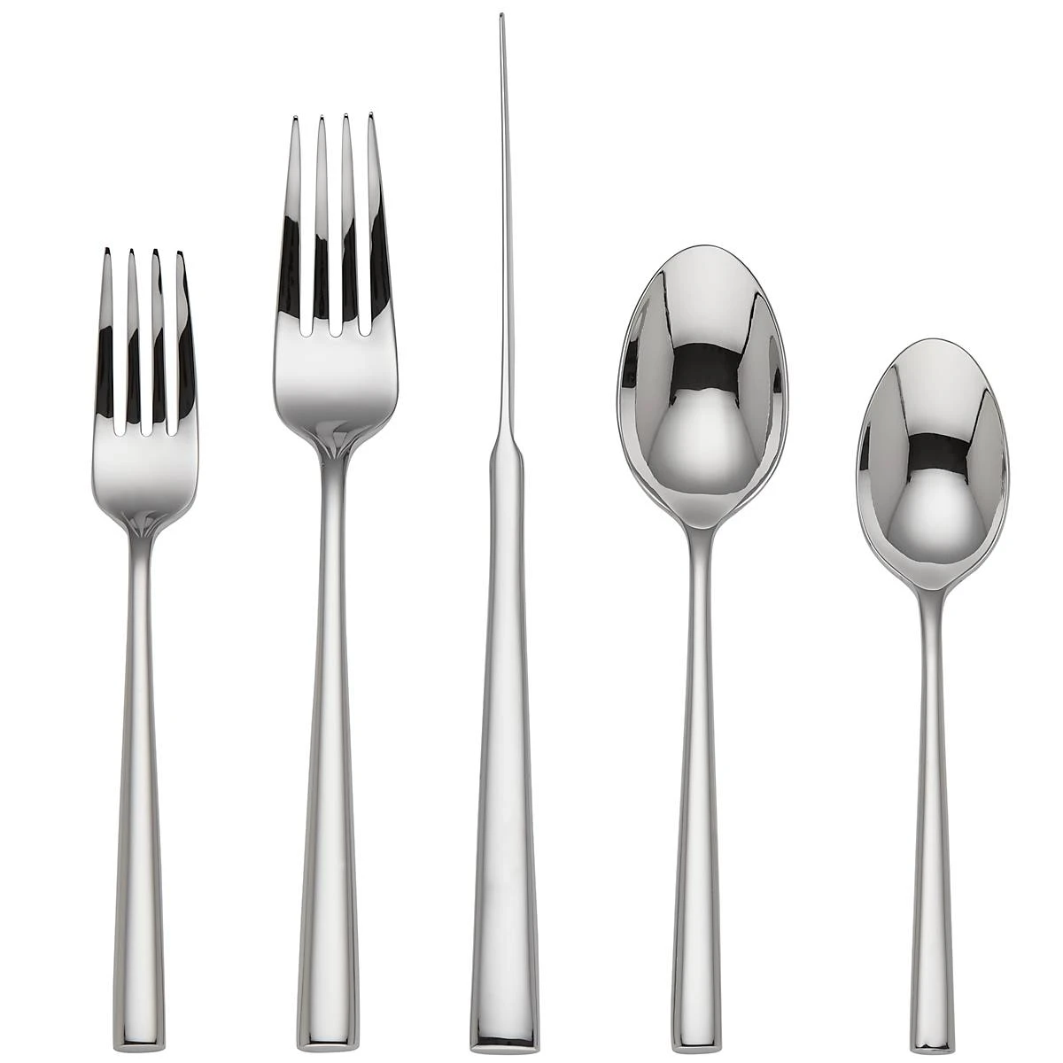 Fact: using proper place settings and serving sets just makes a meal taste better — whether it is beautifully homemade or around-the-corner takeout. Crafted from durable and tarnish-resistant stainless steel, the sleek gold Malmo 5-piece Flatware Set will do nicely.