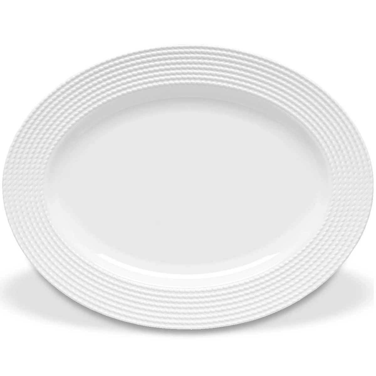 Timeliness with a subtle twist, the Wickford Collection is adorned with a textured rope motif. From Kate Spade New York, the Wickford 16″ Oval Serving Platter is crafted of durable white ceramic porcelain, and is microwave and dishwasher-safe.