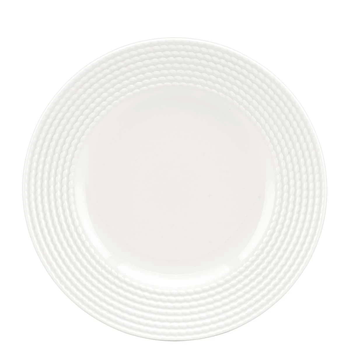 Timeliness with a subtle twist, the Wickford Collection is adorned with a textured rope motif. From Kate Spade New York, the Wickford Accent Plate is crafted of durable white ceramic porcelain, and is microwave and dishwasher-safe.