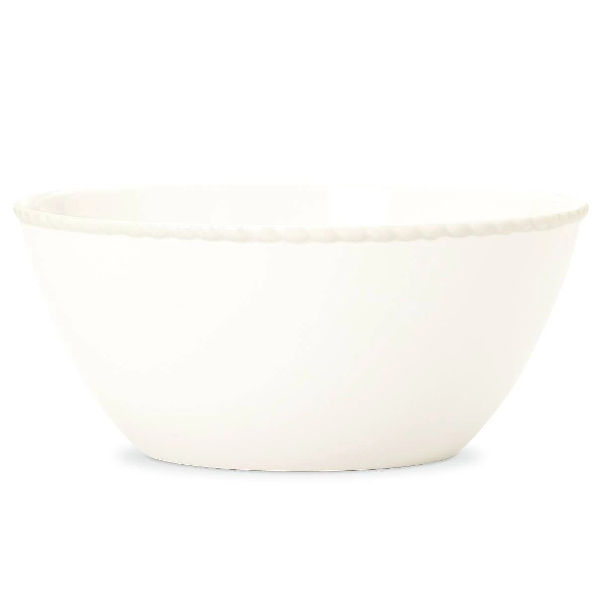 Timeliness with a subtle twist, the Wickford Collection is adorned with a textured rope motif. From Kate Spade New York, the Wickford Fruit Bowl is crafted of durable white ceramic porcelain, and is microwave and dishwasher-safe.
