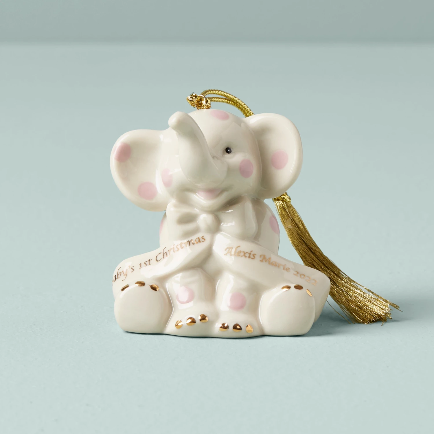 Lenox Baby’s First Christmas Pink Elephant Ornament Personalized Ornaments