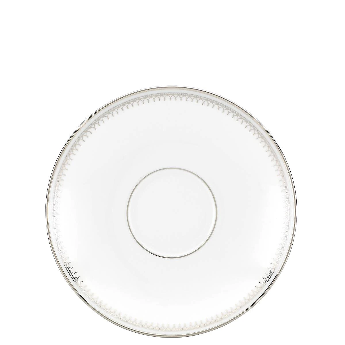 Rest a teacup on the Belle Haven Saucer at the next lavish and luxurious tea time. This durable bone china dish features intricate beadwork and accents in precious platinum. This saucer is dishwasher-safe.