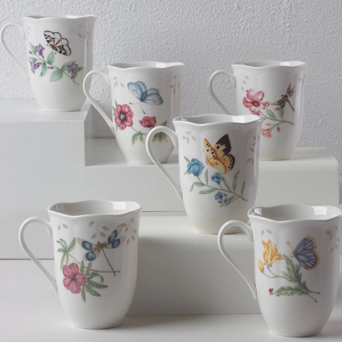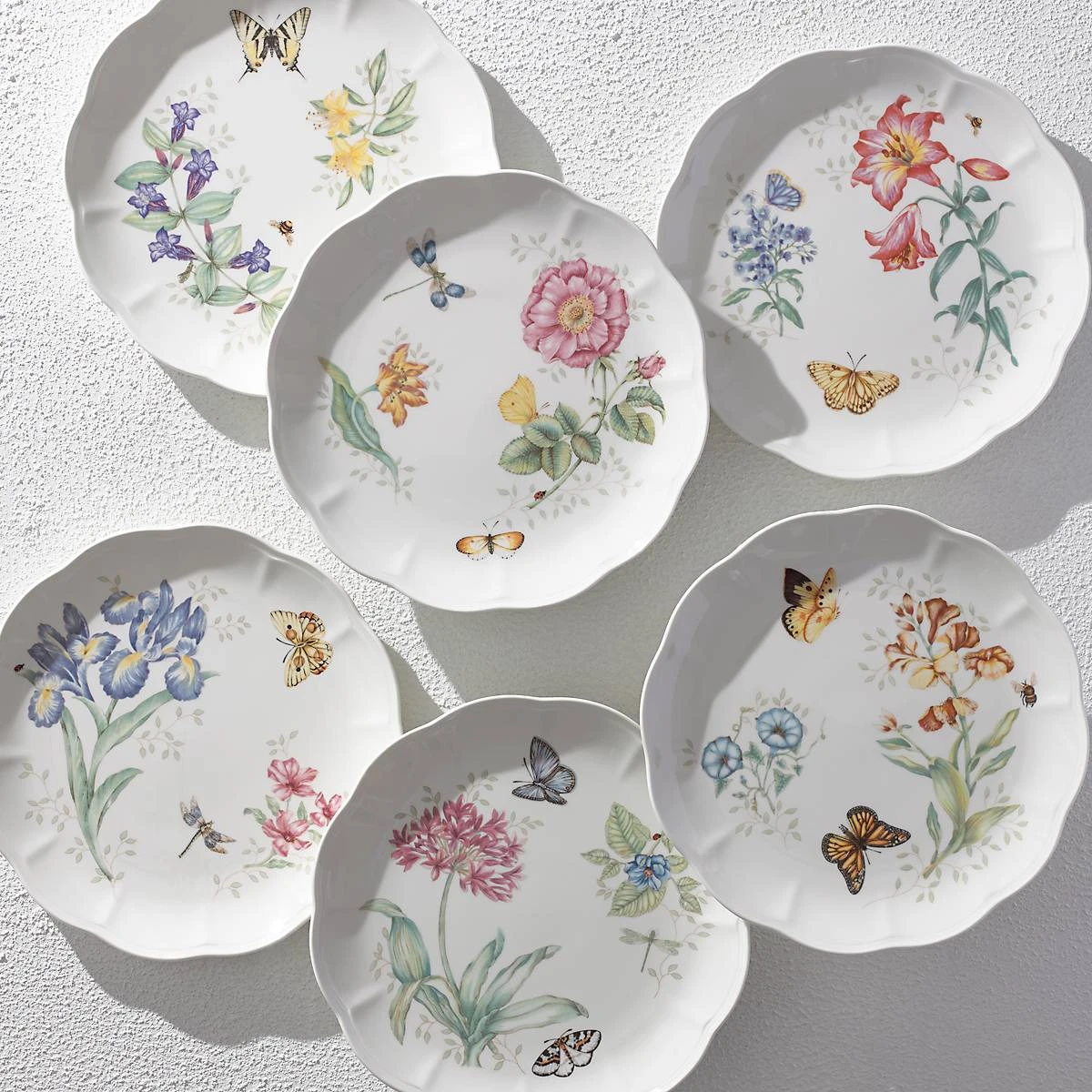 Lively butterflies, dragonflies, and bumblebees buzz about a variety of vibrant flowers on this 18-piece Butterfly Meadow Dinnerware Set. The trademark design features elegantly scalloped edges on durable white ceramic porcelain with blooming mix-and-match designs. With 18 pieces (that’s service for six!) you’ll find this is a sizeable enhancement to your dinnerware repertoire.