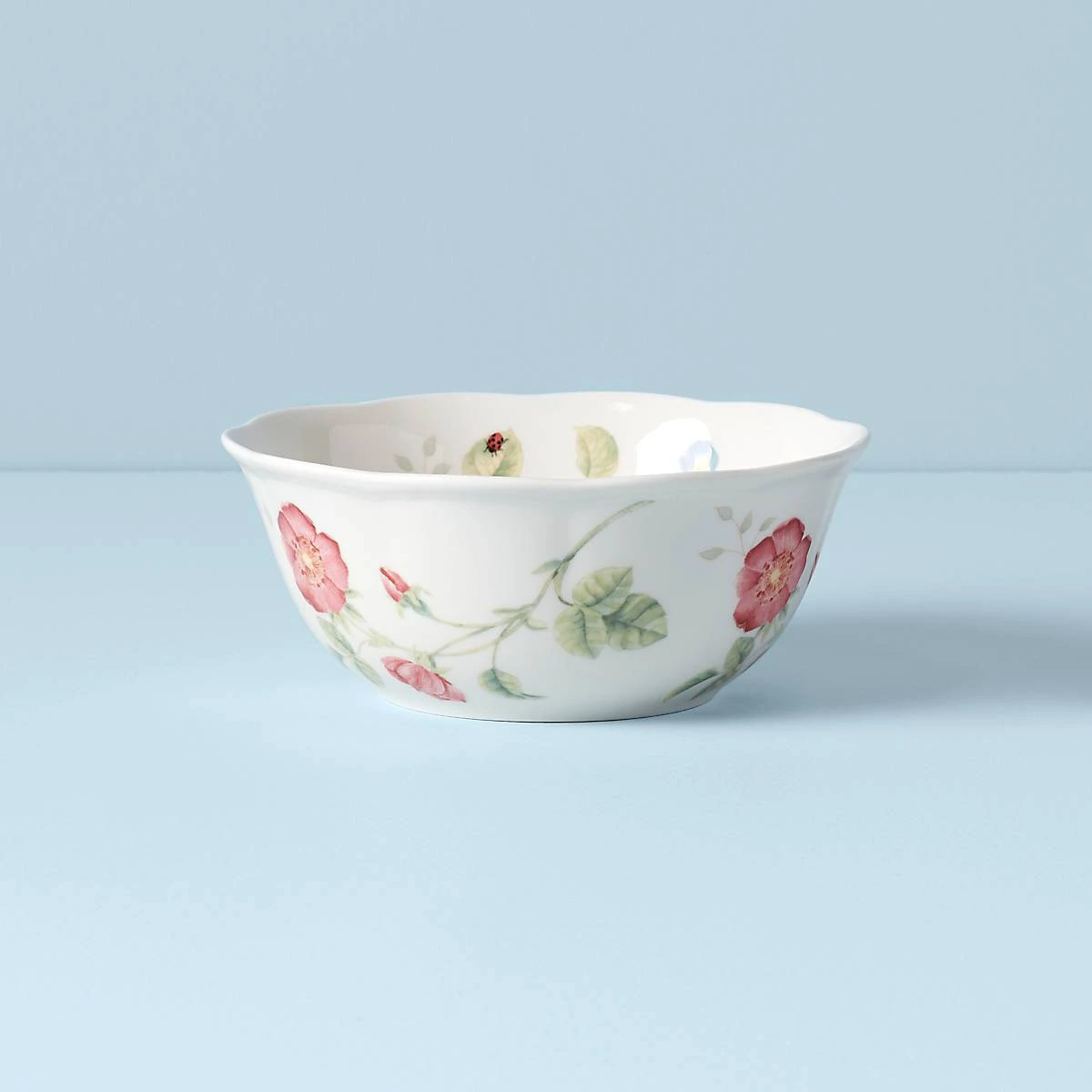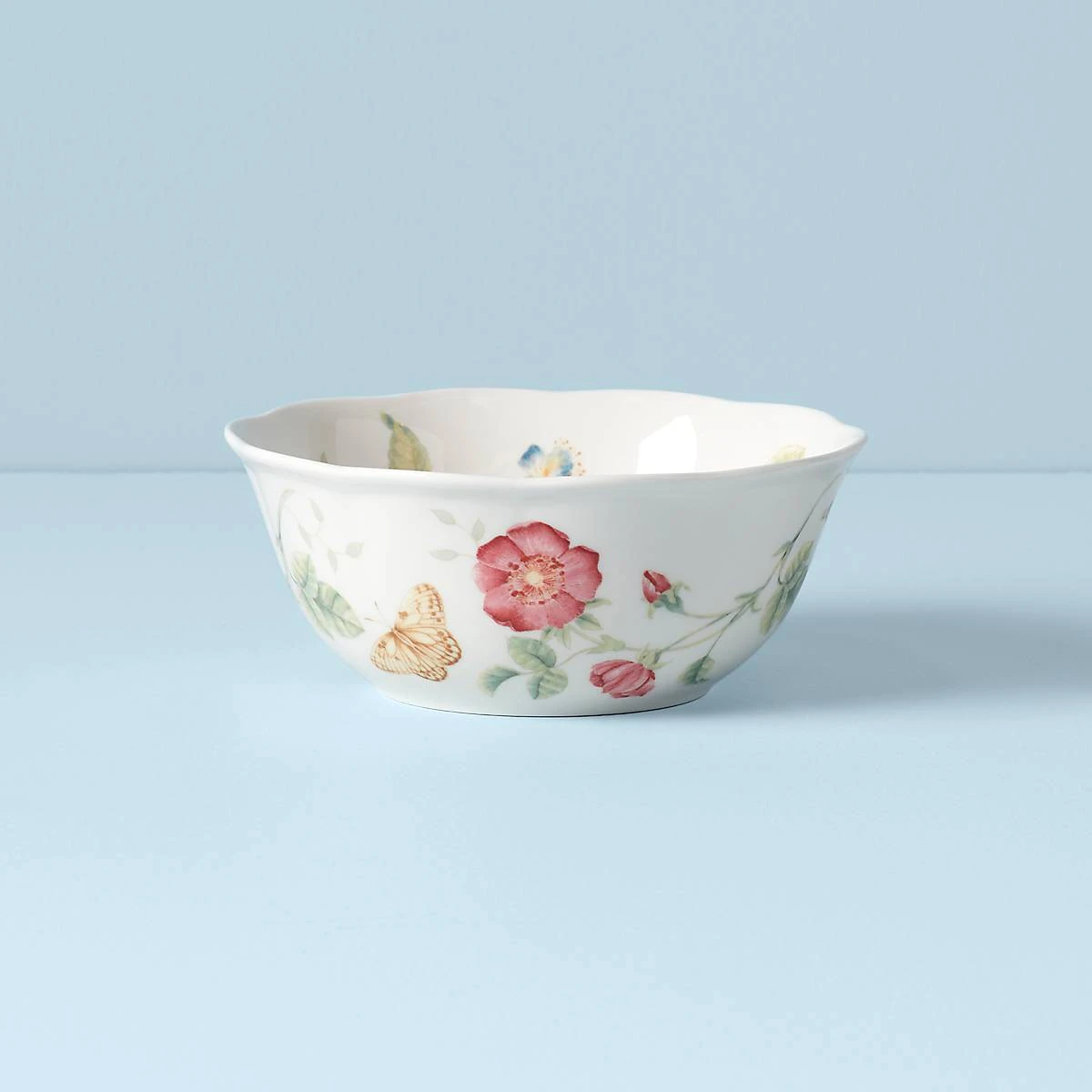 The classic Butterfly Meadow design decorates and shapes this All-Purpose Bowl with a gently scalloped rim and lively garden illustration. Ideal for holding snacks and tabletop serving, this durable ceramic porcelain bowl is microwave and dishwasher-safe.