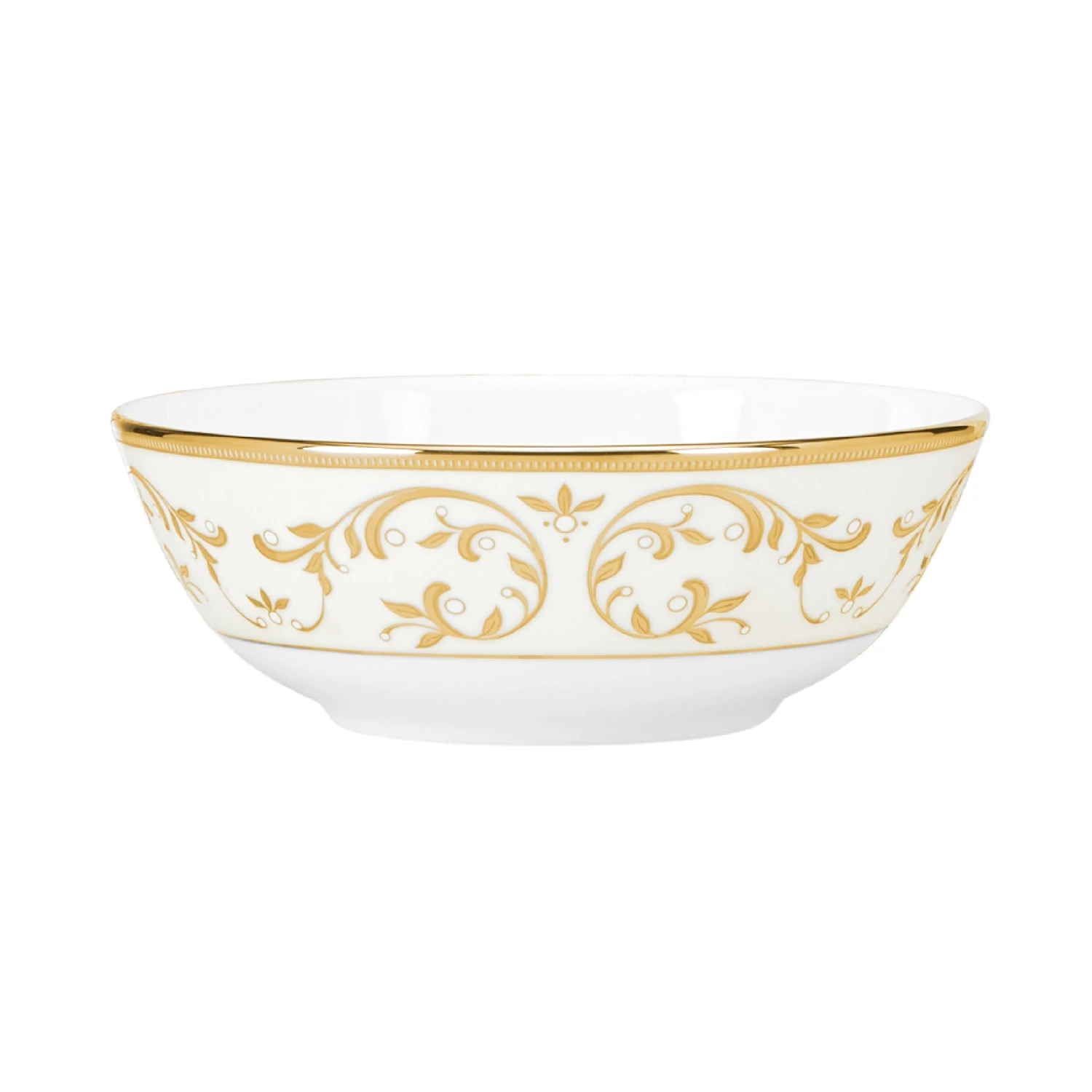 Gleaming gold emphasizes the delicate beauty of a vine motif on this elegant, all-purpose bowl. Broader gold bands and enamel accents add a touch of luxury.