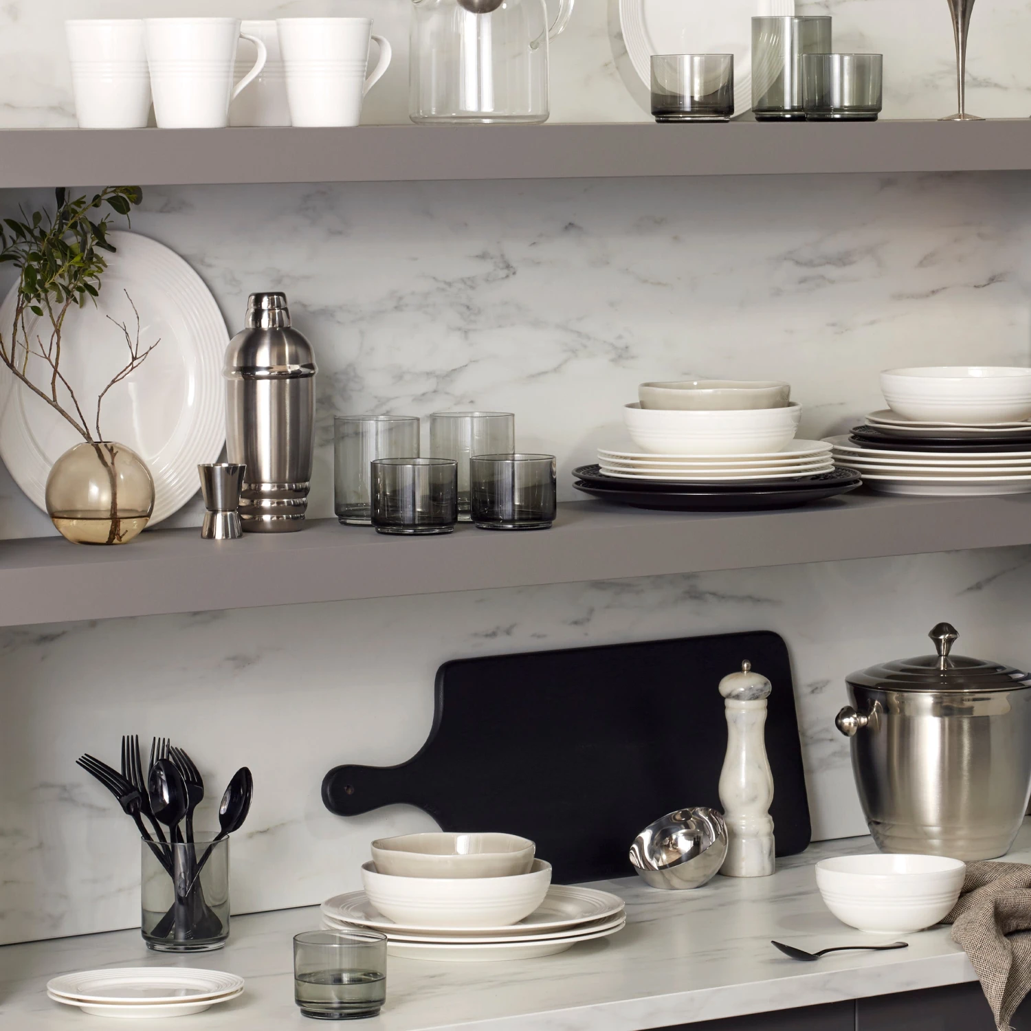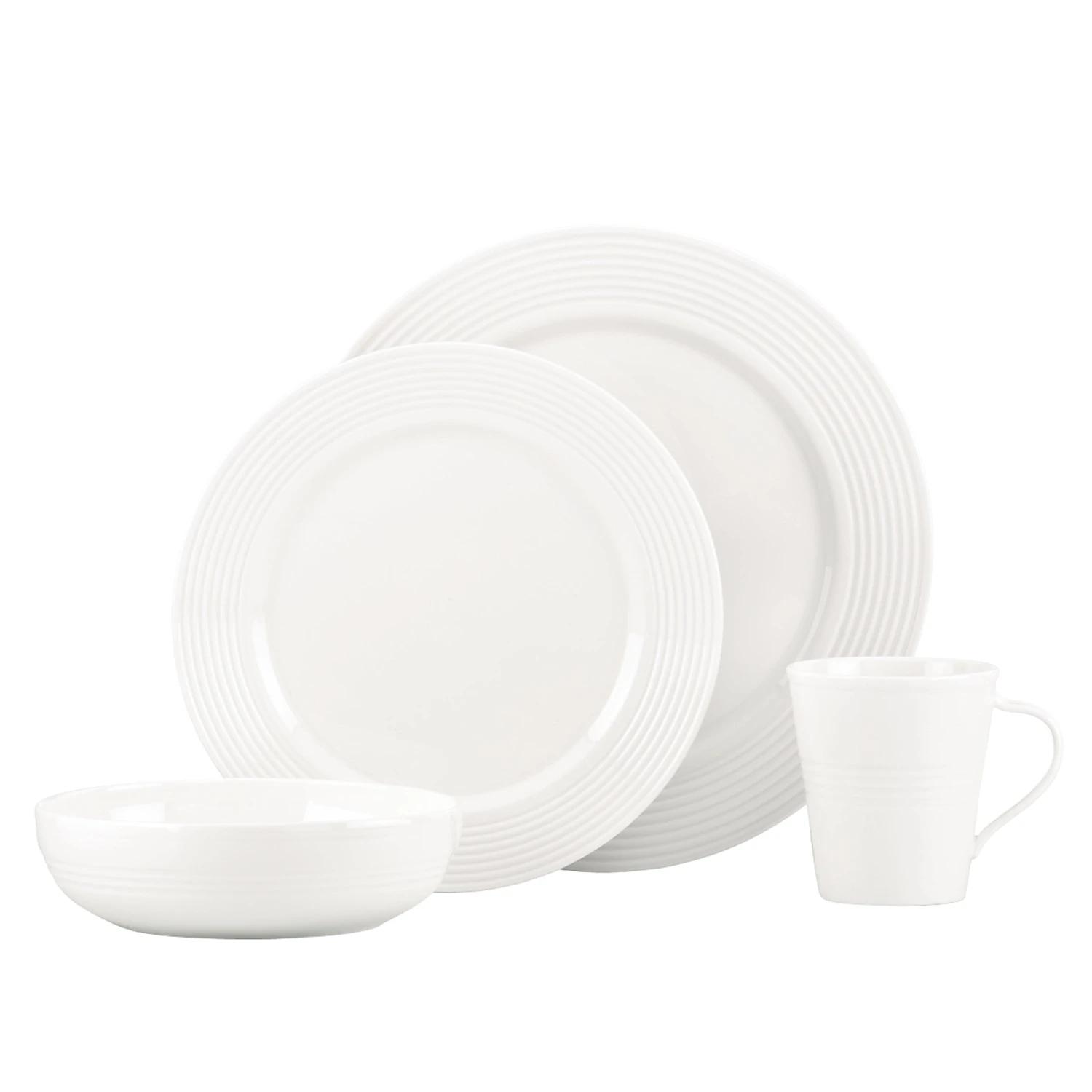 The Tin Can Alley Four Degree 4-piece Place Setting adopts the tin can’s emblematic corrugated rings on durable porcelain for a simple, aesthetic design. This dishwasher and microwave-safe set suits any occasion and complements a variety of dinnerware styles.