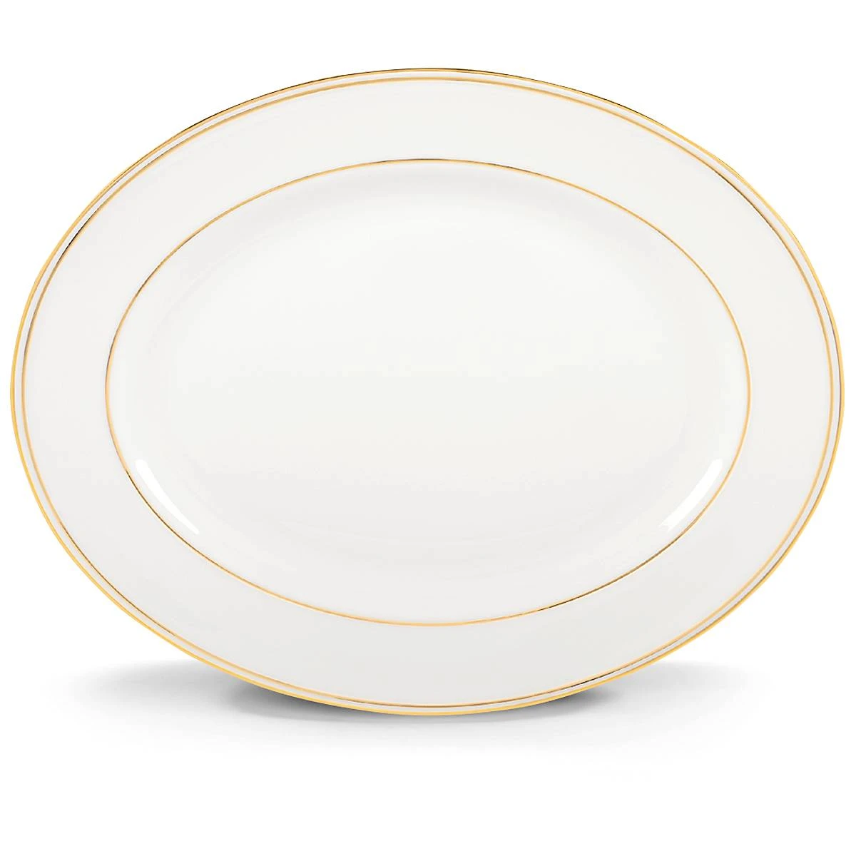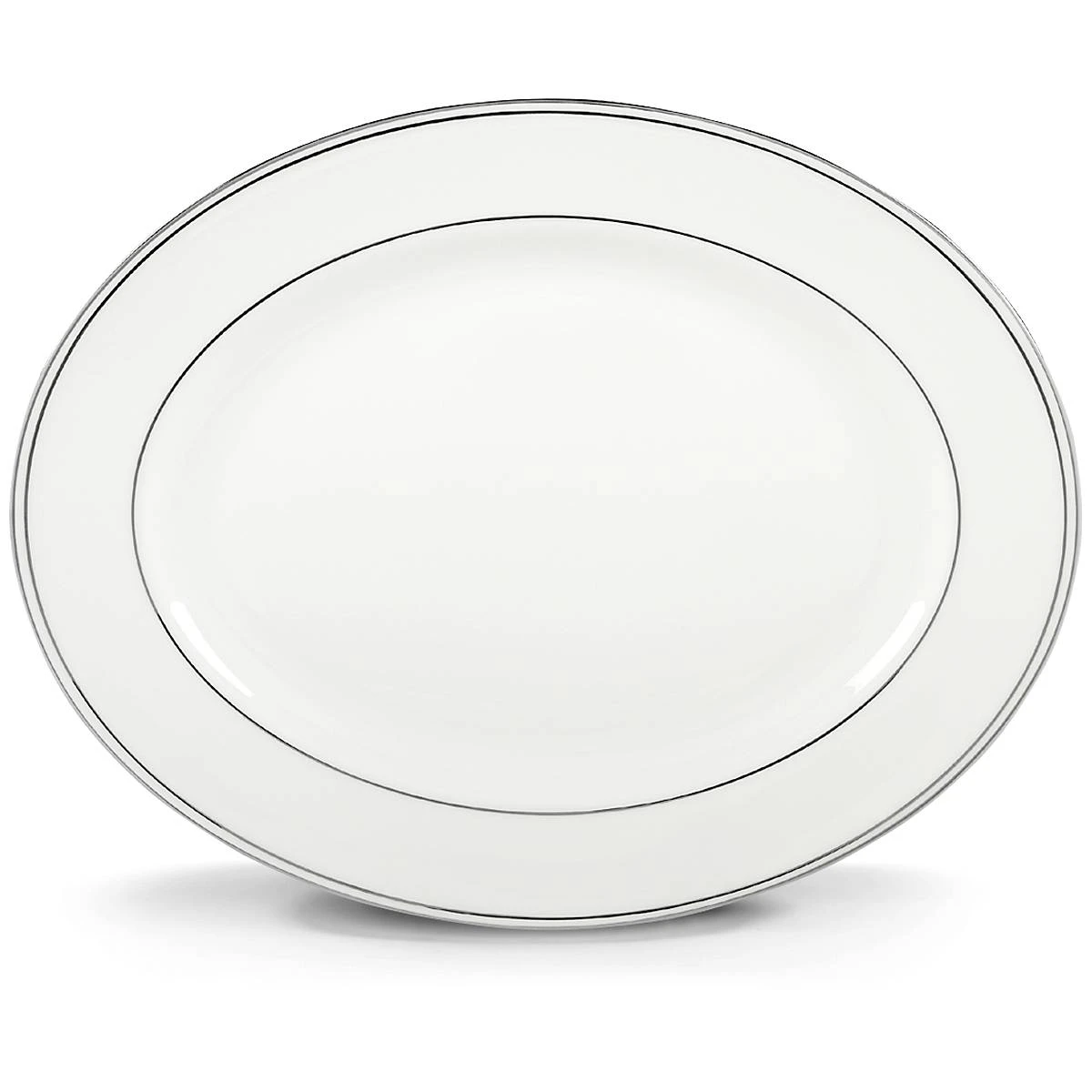 This oval platter, crafted of durable white bone china, features a glittering band of precious platinum accents along the inner and outer rims, for an exceptional addition to a dinner table. This item is dishwasher-safe, for added convenience.