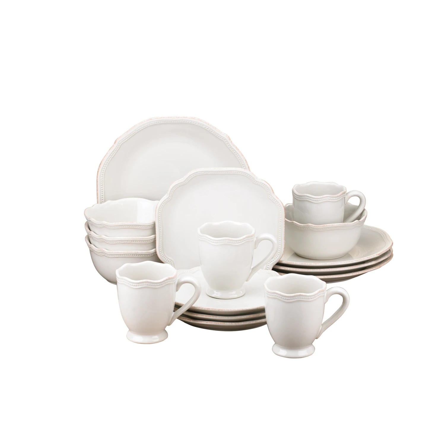 The French Perle Bead collection is beautifully understated for everyday dining yet elegant for any occasion. Featuring a motif of embroidery-inspired beads, this 16-piece set is crafted of durable stoneware and is dishwasher and microwave-safe for added convenience.