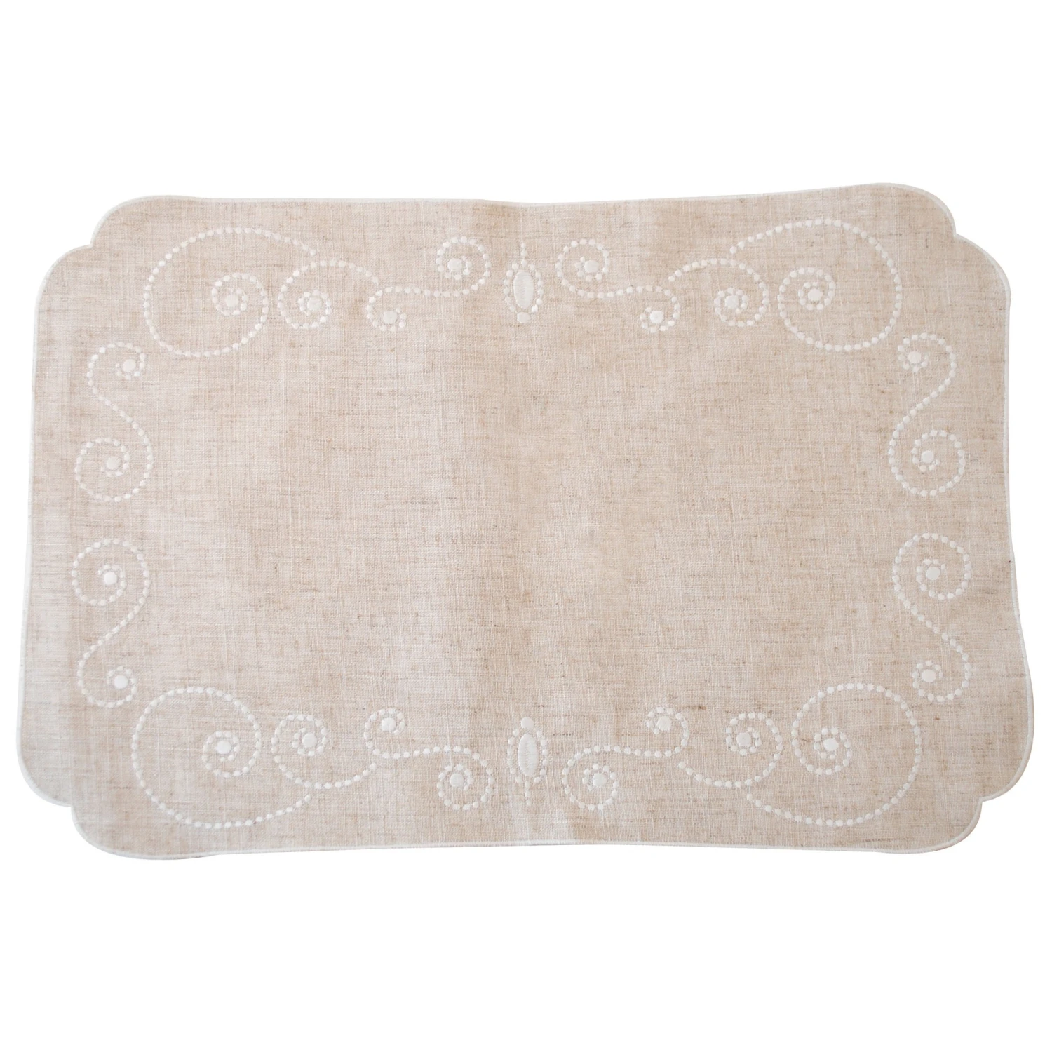 Inspired by our popular French Perle dinnerware, this rectangular place mat features an elegant motif on a polyester linen fabric blend. Great for both casual and formal table settings, this lovely place mat is a perfect addition to your spring and summer tables.