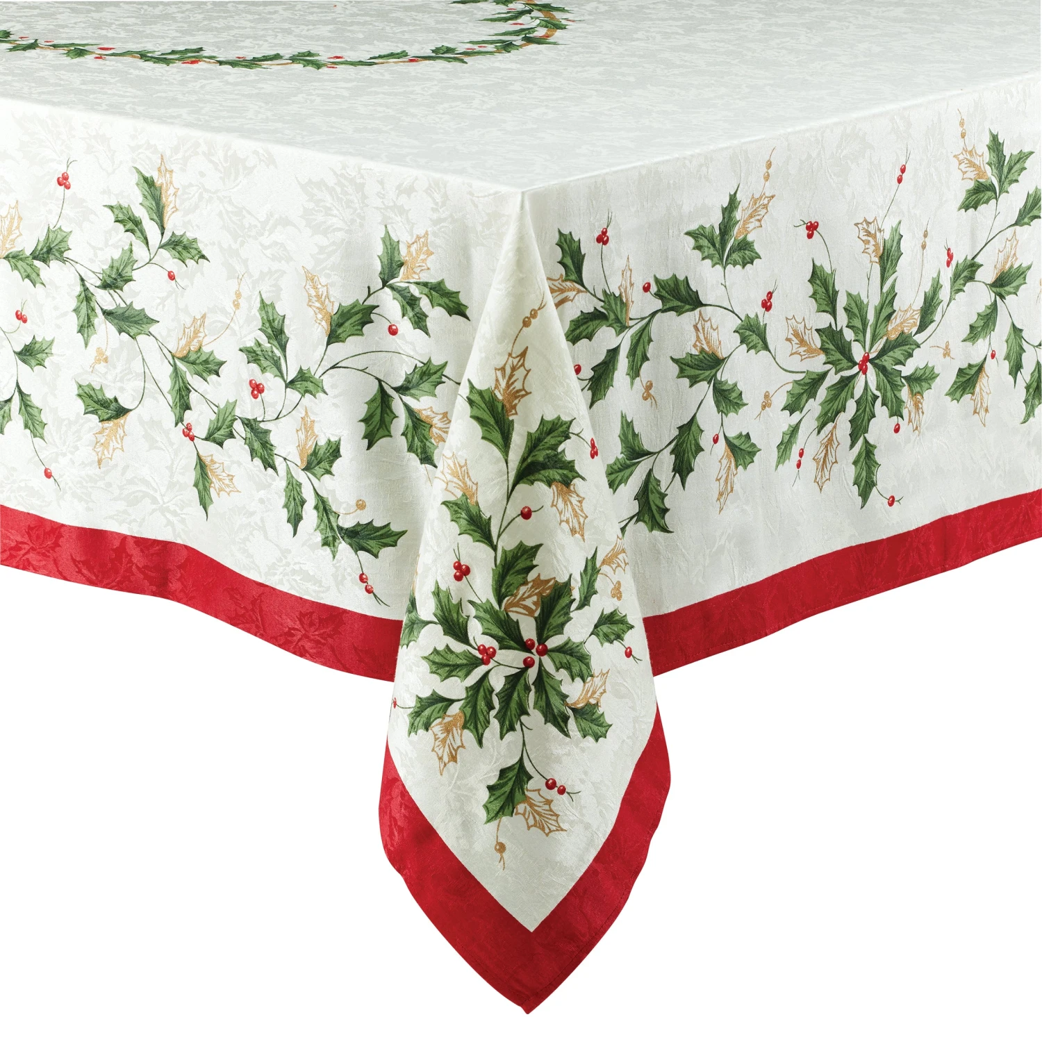 Our legendary Holiday pattern from the 1970s comes to your table in a new way through this elegantly designed tablecloth that coordinates with your favorite dinnerware line. The creamy white backdrop features thoughtfully placed holly leaves throughout and a bright red border along the trim. It’s a stylish addition to your Christmas table setting and a must-have for any Lenox Holiday pattern fans.