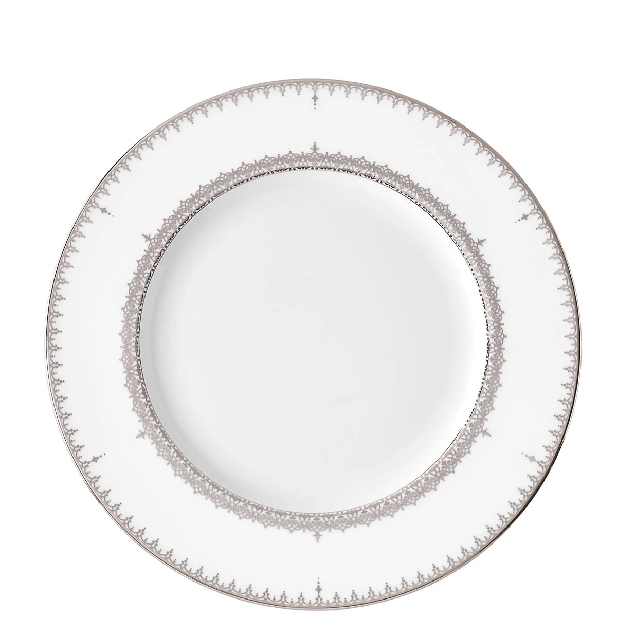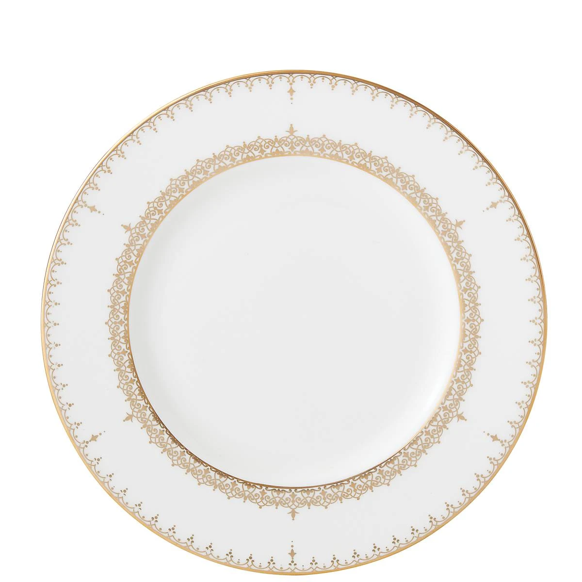 Crafted of durable and pristine white bone china, the impressive Lace Couture Gold Accent Plate is framed by a laced motif that is similar to a rich tapestry. This ornate accent plate is accented in precious 24-karat gold, and is dishwasher-safe for added convenience.
