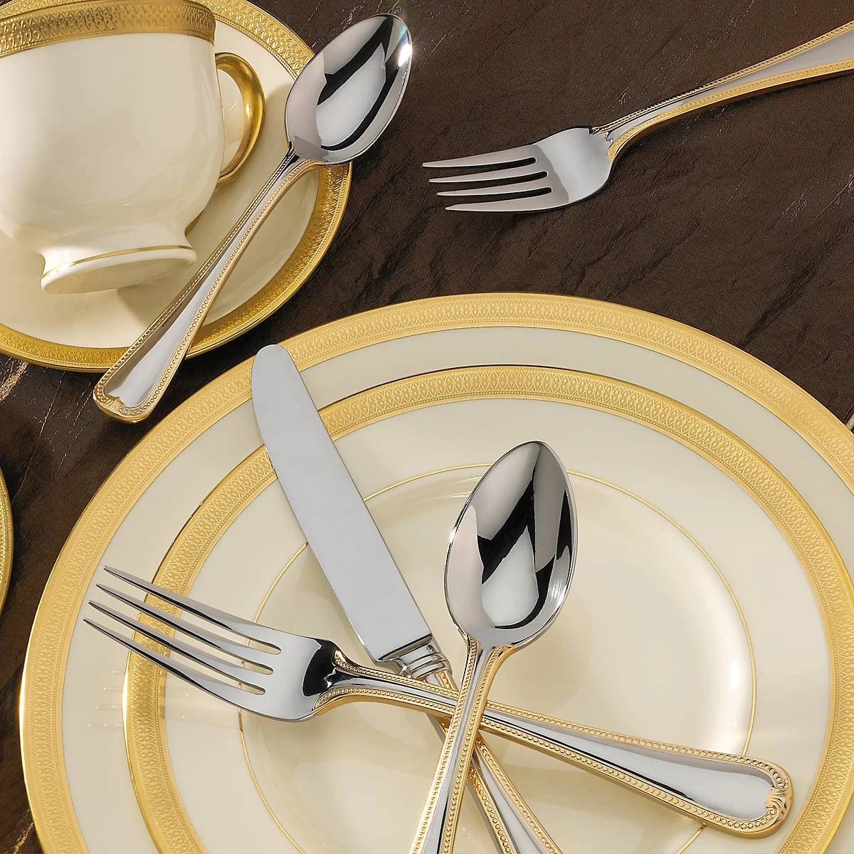 Ideal for a tea time for dessert course, the elegant Lowell Saucer is crafted of durable ivory bone china and features a classic design that is reminiscent of a bygone era. This ornate saucer is thoroughly accented in regal 24-karat gold, and is dishwasher-safe for added convenience.