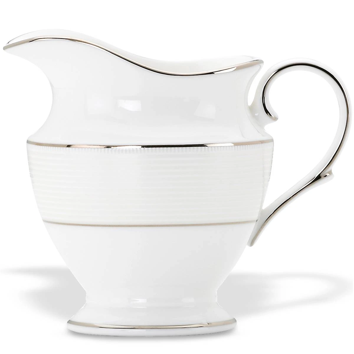 The elegant and classic Opal Innocence Stripe Creamer features a pristine white raised stripe motif that strides across its center. This ornate and durable bone china creamer is thoroughly accented in precious platinum, and is dishwasher-safe for added convenience.