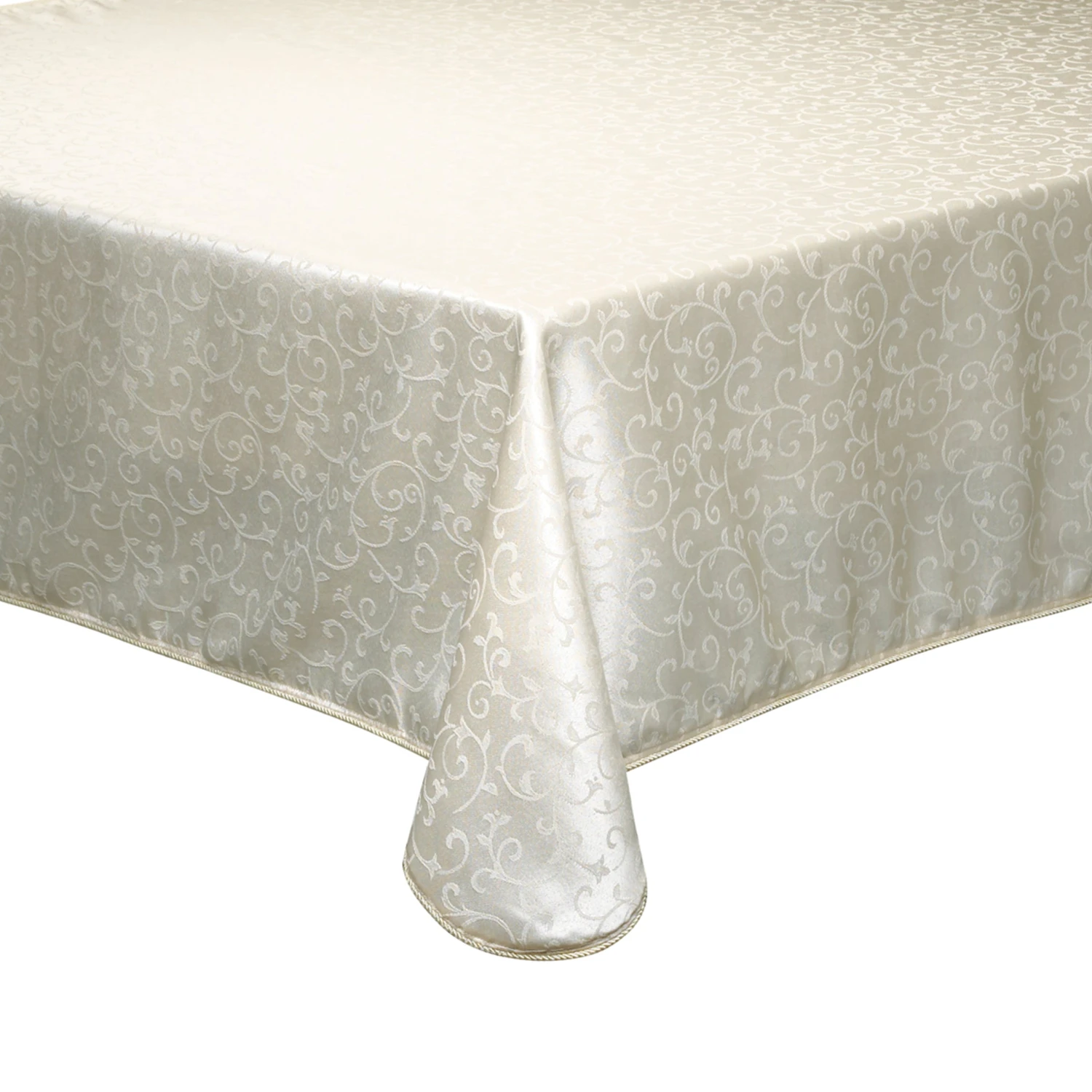Vines wind gracefully against the creamy ivory fabric on this Opal Innocence tablecloth. Dressed with a subtle sheen, this lustrous tablecloth creates a beautiful backdrop for your fine china, crystal and flatware.