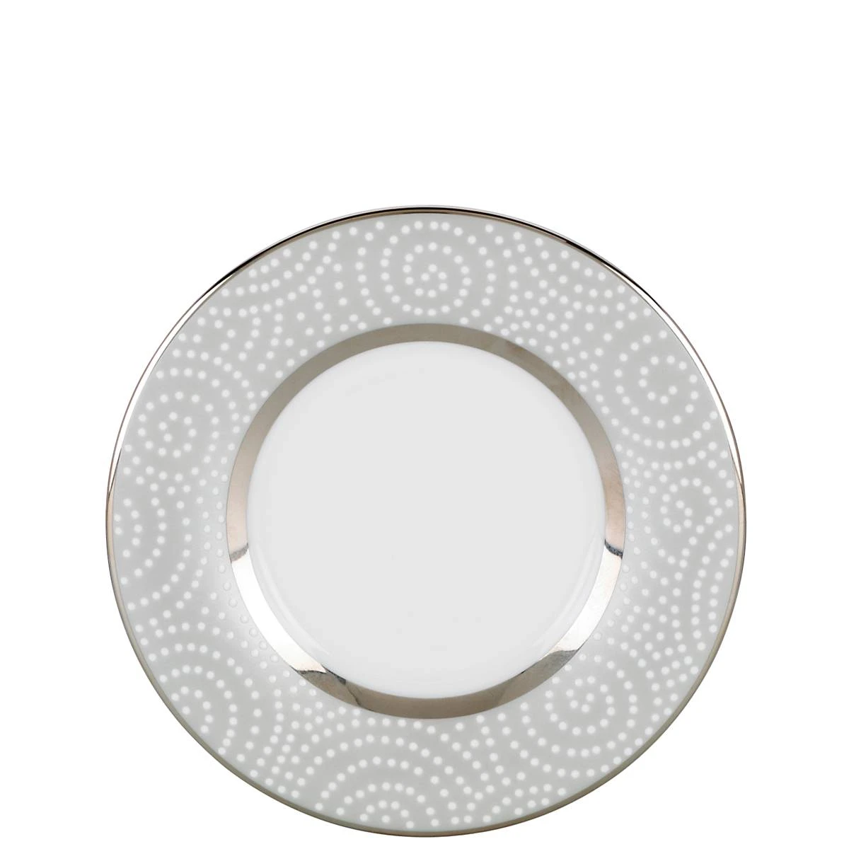 Ideal for a tea time for dessert course, rest a teacup on the ornate and elaborate Pearl Beads Saucer. Framed by a swirling motif of raised white beads inside two concentric circles of precious platinum accenting, this elegant and durable bone china saucer is also dishwasher-safe for added convenience.