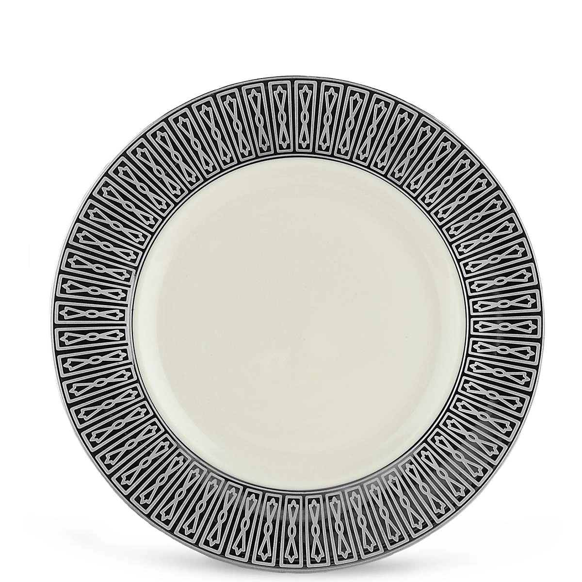 This ivory accent plate features a brilliant band of precious platinum, decorated with a modern geometric design that evokes glamourous evenings out with friends. Use for serving guests elegant meals. Crafted of durable bone china, this item is dishwasher-safe, for added convenience.