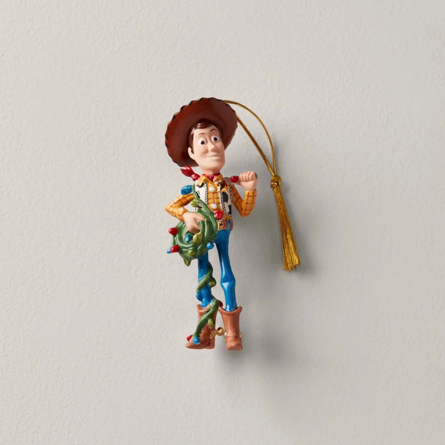Celebrate Christmas with everyone’s favorite cowboy. Woody from Toy Story 4 is all wrapped up in Christmas tree lights. This hand-painted ornament makes a perfect gift for any Disney Pixar fan.